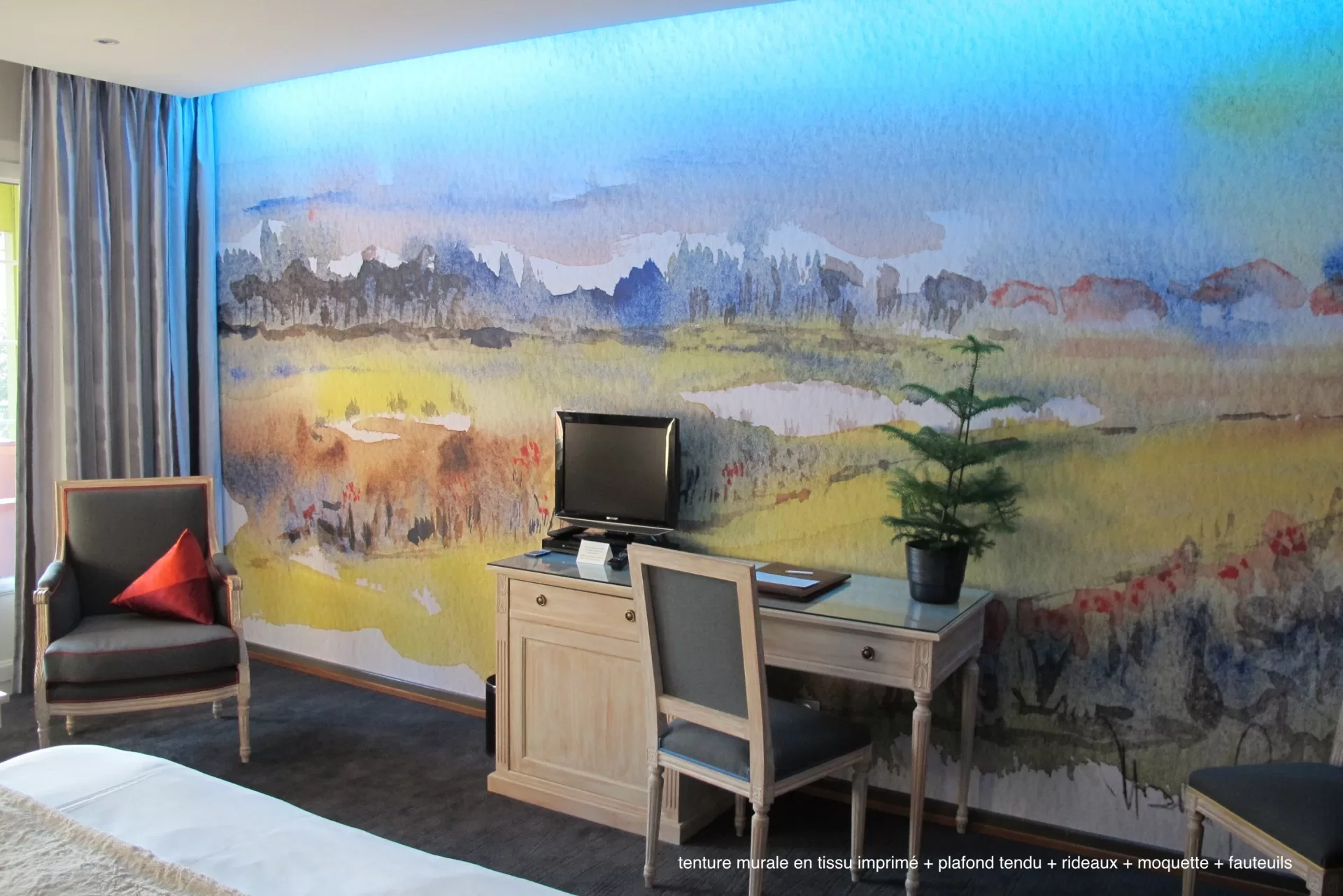 Photo, dessin, aquarelle, graphisme… Tout est possible ! Le tissu tendu s’adapte aussi bien dans un intérieur privé que dans un lieu public comme un hall d’hôtel par exemple.
